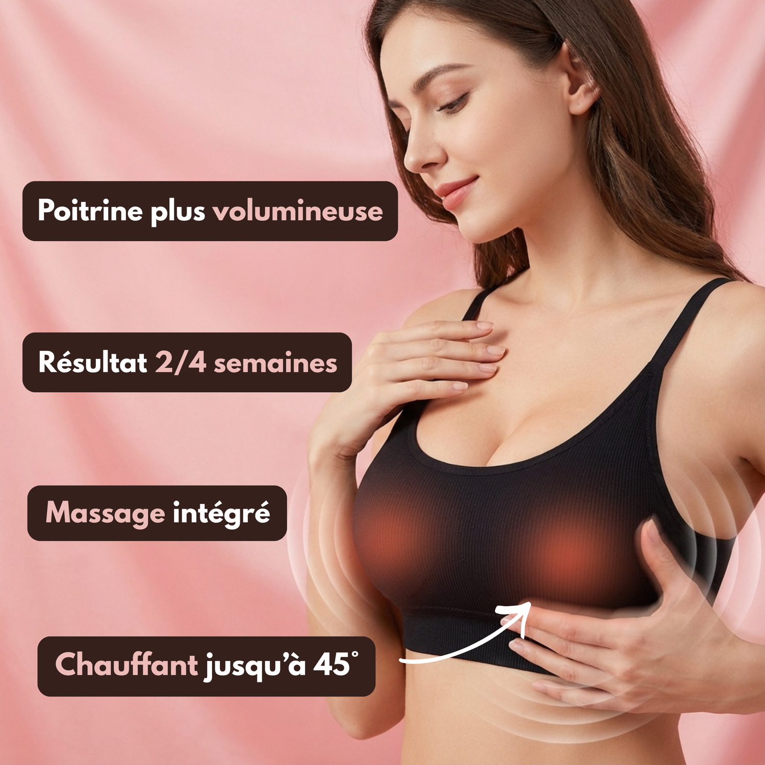- Effet immédiat : poitrine plus rebondie grâce au massage